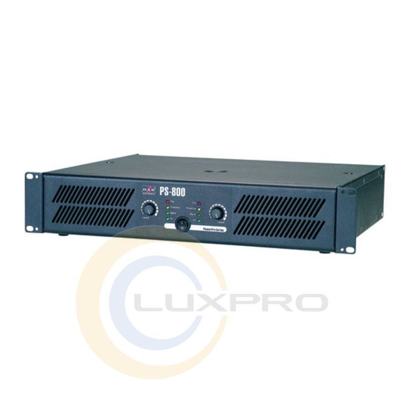 PS-800 - усилитель мощности, имеющий стальном корпус высотой 2U. Вентиляторы с низким уровнем шума обеспечивают тихое и эффективное охлаждение. На задней панели расположены переключатели: вкл./выкл. заземления, переключение режима (мост, стерео, параллельный), выбор входной чувствительности.