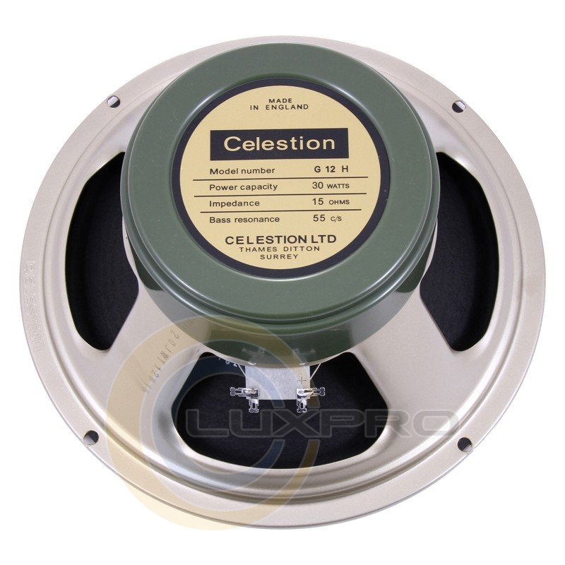 CELESTION Heritage Series G12H (55) - НЧ динамик гитарный Heritage Series G12H (55), 12" мощность 30Вт, импеданс 8 Ом, чувствительность 100дБ, стальной каркас, керамический магнит, частотный диапазон 55Гц - 5000Гц, резонанс 55Гц, сочетает в себе смесь звучаний G12M и Vintage30, плотное и теплое звучание с легким сфокусиорованным низом, пр-во Британия.