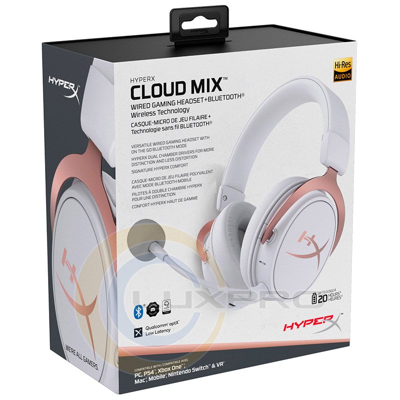 HyperX Cloud MIX™ — это многофункциональная проводная гарнитура, которая легко превращается в легкую и портативную гарнитуру Bluetooth®. Во время использования проводного соединения, она выдает все богатство звука Hi-Res Audio на частотах от 10 Гц до 40 кГц, чтобы вы смогли услышать все детали и нюансы звука, которые иначе могли бы пропустить. Решив вернуться в реальность, вы сможете отвечать на звонки и переключаться в беспроводной режим Bluetooth®, в котором сможете находиться до 20 часов.