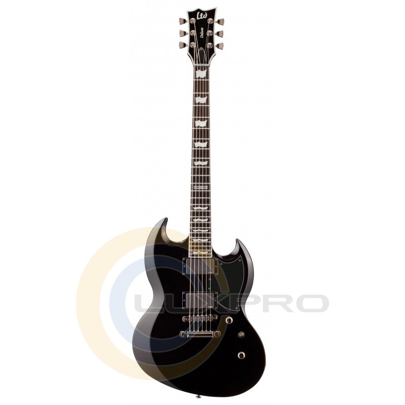 VIPER1000 BLK - электрогитара, корпус из красного дерева, вкленный гриф из красного дерева с палисандровой накладкой, мензура 24.75, 24 XJ лада, фигурная окантовка коруса и грифа, инкрустация грифа,бридж Tuneomatic, звукосниматели EMG 81/EMG 85, колки Sperzel, 1 громкость, 1 тон, 3-х позиционный переключатель, цвет: see thru black (STBLK).