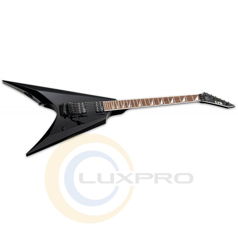 ARROW200 BLK - электрогитара, тип конструкции: вклеенный гриф (set neck), корпус: красное дерево, мензура: 25.5", гриф: клен (maple), накладка грифа: жатоба, профиль грифа: Thin U, ширина грифа: 42 мм (верхний порожек), радиус накладки грифа: 350 мм, инкрустация: маркеры ладов типа "sawtooth", название модели на 12-м ладу, окантовка: белая, по грифу, бридж: тремоло LTD by Floyd Rose, звукосниматели: ESP Designed LH-150B / LH-150N, лады: 24 XJ, механика: чёрная, колки: LTD, управление: 1 громкость, 3-позиционный переключатель, цвет: чёрный - Black (BLK), струны: D'Addario XL120 (.009/.011/.016/.024/.032/.042), комплектация: гитара, ключи для анкера и тремоло, производство: Китай, гарантия: 12 месяцев (на электронные и механические компоненты).