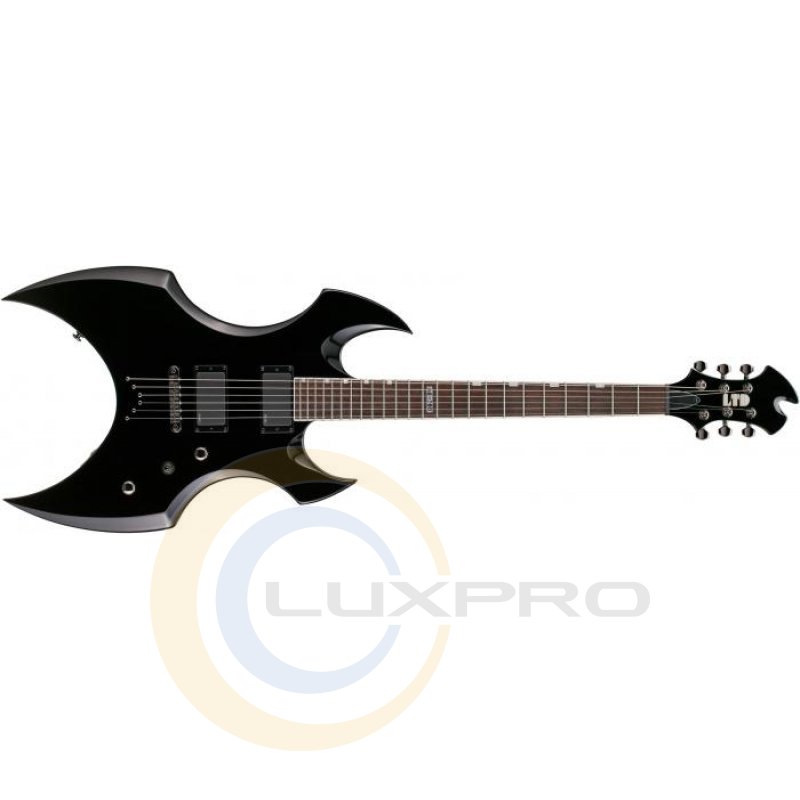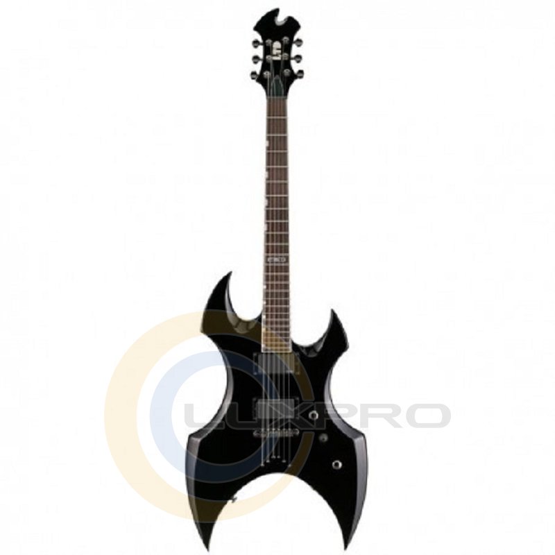AX360 BLK - электрогитара, корпус из красного дерева, сквозной гриф из красного дерева с накладкой из палисандра, блоки маркеры ладов, мензура 25.5", 24 XJ лада, бридж Tune-o-matic струны сквозь корпус, звукосниматели 2 x EMG81, 1 громкость, 1 тон, 3-х позиционный переключатель, механика черный никель, цвет Black (BLK).
