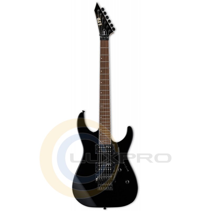 M200 BLK - электрогитара, тип конструкции: гриф на болтах, корпус: красное дерево, мензура: 25.5", гриф: клён, накладка грифа: жатоба (Roasted Jatoba), профиль грифа: Extra Thin U, ширина грифа: 43 мм верхний порожек, радиус накладки грифа: 350 мм, инкрустация: смещенные точки - маркеры ладов, окантовка: белая по грифу, бридж: LTD by Floyd Rose, звукосниматели: ESP Designed LH-150B / LH-150N, лады: 24 XJ, механика: чёрная, колки: LTD, управление: 1 громкость, 1 тон, 3-позиционный переключатель, цвет: чёрный - BLK (Black), струны: D'Addario XL120 (.009/.011/.016/.024/.032/.042), комплектация: гитара, ключи для анкера и тремоло, производство: Китай, гарантия: 12 месяцев (на электронные и механические компоненты).