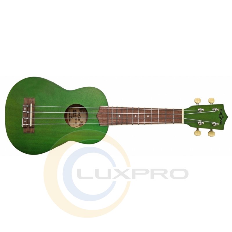 FZONE FZU-003 (Green) - укулеле, сопрано, 4 струны, верхняя дека: агатис (Agathis), гриф: красное дерево с накладкой из сонокелинга, бридж: сонокелинг, корпус: агатис (Agathis), механика: никелированные колки открытого типа, цвет: Green, производство: Китай.
