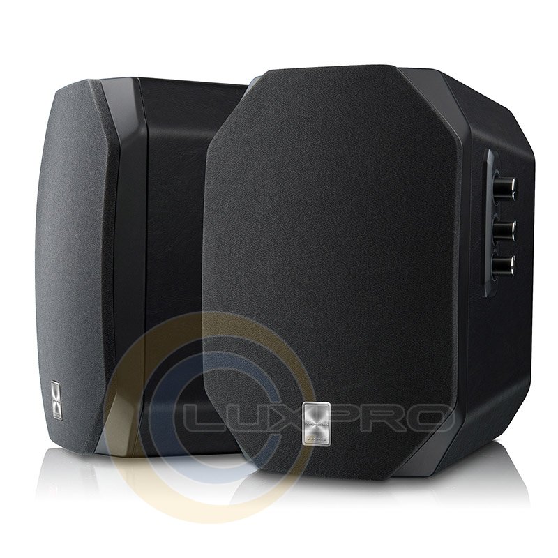 Дизайн корпуса имеет сложную многогранную форму, боковые панели покрыты качественной искусственной кожей, благодаря чему система X1 выглядит дорого и современно. Верхние и нижние грани колонок слегка закруглены, что придает корпусу нотку изящности.