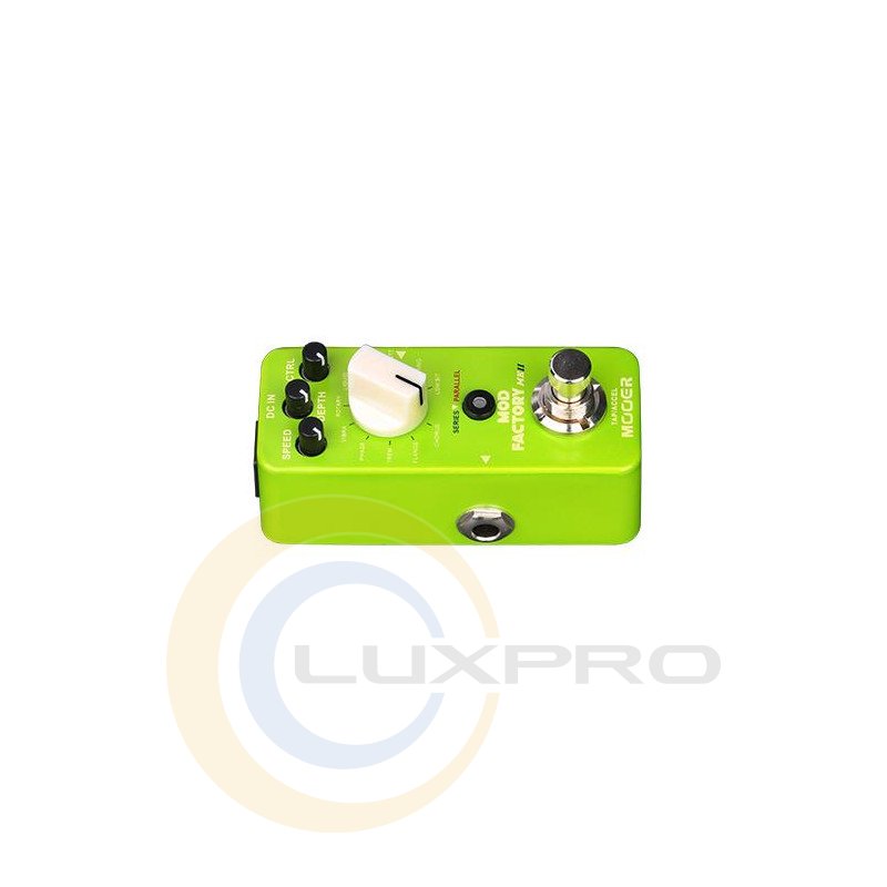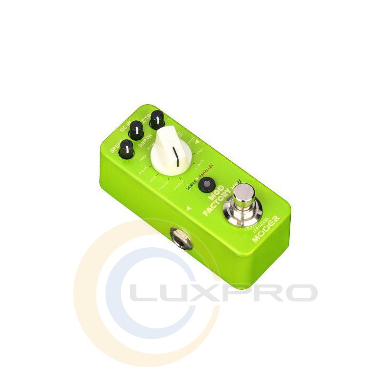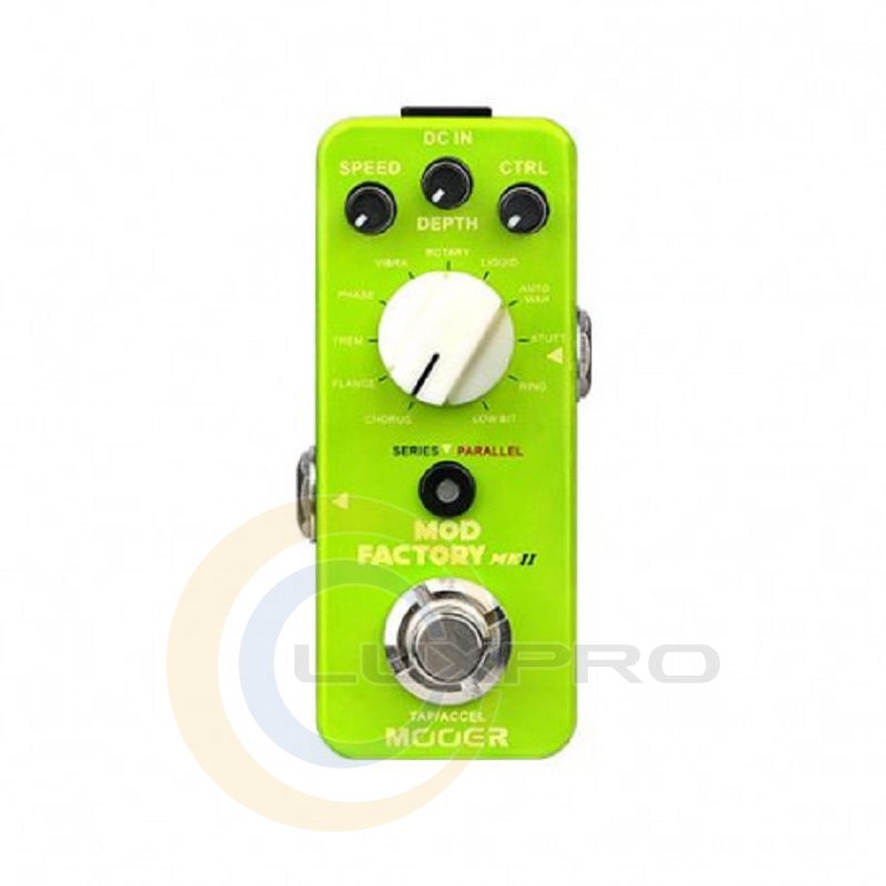Mod Factory MKII – педаль эффектов, гитарный преамп, 11 обновленных модуляционных эффектов, высококачественный 32bit DSP процессор, управление: Mode, Speed, Depth, Ctrl, Tap Tempo и Acceleration функции (управляется футсвичем), SERIES/PARALLEL режимы работы, металлический корпус, True Bypass, питание 9В адаптер (не входит в комплектацию), потребление тока: 160 мА, размеры: 93.5 × 42 × 52 мм, вес: 170 г.