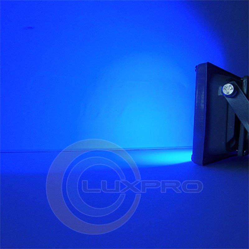 LED прожектора имеют ракурс светорассеивания 120° и могут использоваться в виде акцентного источника или общего освещения. Светодиодный прожектор с мощностью 10 Вт излучает глубокий яркий и насыщенный синий цвет с высокой степенью защиты IP65 и цветовым диапазоном 450-460 nm, который безопасен в применении и дает возможность использования прожектора на улице. Водонепроницаемый и пылезащищённый корпус изготовлен из алюминия и покрыт порошковой краской серого цвета. Он полностью герметичный и закрыт каленым стеклом.