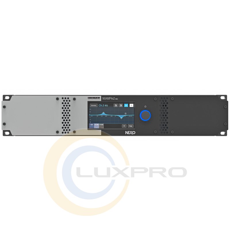 Усилитель NXAMP4X2MK2 Plug&Play усилитель-контроллер для любых акустических систем Nexo, мощность: 4 x 1200 Вт / 8 Ом, 4 x 1900 Вт / 4 Ом, 4 x 2500 Вт / 2 Ом, 2 х 3800 Вт / 8 Ом, 2 х 5000Вт / 4 Ом, частотный диапазон: ±1.0дБ (20 кОм, 16 dBu, 10Гц — 20кГц), аналоговые входы: 4 x XLR, аналоговые выходы: 4 х Neutrik Speakon NL-4, АЦП/ЦАП 32бит/96кГц, задержка 550мкс, 4,3" сенсорный дисплей, 3 встроенных многоядерных 64бит DSP, плата расширения Ethernet, разъемы RS232 и GPIO, размеры: 2U 19", глубина: 502 мм, вес: 16,1 кг, гарантия: 2 года.