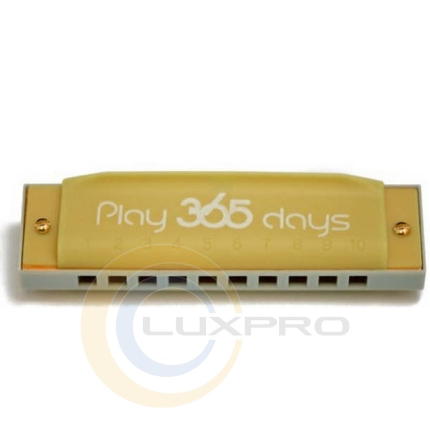 Диатоническая губная гармошка Play 365 Days. 10 отверстий. До мажор. Пластиковый корпус. Размеры: 102х29х19 мм. В комплекте пластиковый футляр.