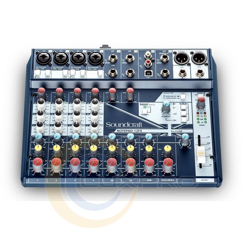 Soundcraft Notepad-12FX - это 12-канальный микшерный пульт, который предоставляет легендарное звучание Soundcraft для вашей музыки, подкастов или видео. Notepad-12FX сочетает в себе профессиональные аналоговые компоненты, известную цифровую обработку сигналов HARMAN и встроенный USB-аудиоинтерфейс для использования с вашим любимым программным обеспечением для редактирования на Mac или ПК. Независимо от того, являетесь вы певцом или подкастером, Notepad-12FX предлагает лучшие в своем классе функции, в числе которых эффекты Lexicon®, так что теперь вы сможете сделать собственные творческие проекты максимально совершенными.Микшерные пульты SOUNDCRAFT серии Notepad продолжают эту традицию вместе с профессиональными микрофонными предусилителями Soundcraft, удобными разъемами XLR и 1/4", а также прочными металлическими корпусами, которые выдержат испытание временем. Наличие Aux посыла и трехполосного эквалайзера на каждом канале обеспечивает такой уровень удобства, который зачастую встречается исключительно в больших консолях. Поворотный регулятор уровня сигнала в наушниках позволяет быстро и легко настроить персональный мониторинг, в то время как уровень мастер-фейдера со светодиодной индикацией обеспечивает точный контроль над основным выходным сигналом. Предназначенная для домашних студий, репетиций, живых выступлений и производства подкастов, серия Notepad предлагает карту управления, знакомую профессионалам в области аудио, и в то же время удобную для новичков.Компактные микшеры Notepad легко помещаются в транспортировочные сумки и предоставляют множество возможностей для музыкальных сессий, репетиций и концертов. Эти устройства спроектированы таким образом, чтобы обеспечить высокую звуковую производительность Soundcraft и позволить вам работать с любимым оборудованием, таким как микрофоны, гитары, клавишные и многое другое.Комбинация высококачественных компонентов Soundcraft и встроенного USB-аудиоинтерфейса делают Notepad идеальным инструментом для подкастинга. Пульт SOUNDCRAFT Notepad-12FX оснащен цифровыми эффектами Lexicon, чтобы предоставить вашим проектам такой уровень обработки, который обычно достигается в условиях студийной звукозаписи. В вашем распоряжении реверберация, хорус, а также дилей с возможностью контроля темпа. От захвата монологов до интервью с несколькими участниками дискуссии, микшеры Notepad призваны помочь поделиться собственными идеями с миром.Встроенный USB-аудиоинтерфейс позволяет вам легко записывать, редактировать и воспроизводить проекты при помощи любимого программного обеспечения. Объединив легендарную звуковую производительность Soundcraft с обработкой сигнала HARMAN и встроенным USB-интерфейсом для вашего компьютера, серия Notepad предлагает лучшее из аналогового и цифрового аудио в бескомпромиссном решении.Характеристики: