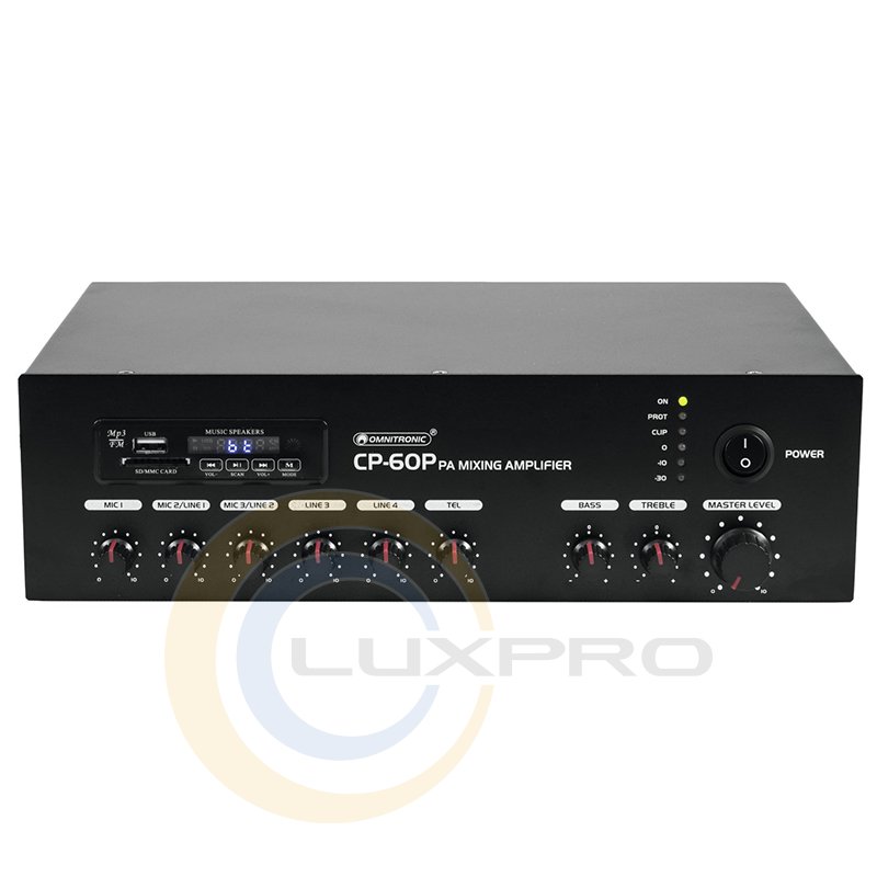 Серия Omnitronic CP - очень компактные трансляционные усилители, которые были специально разработаны для использования в системах PA 100 В. Они обеспечивают выходную мощность 30, 60 или 120 Вт. Можно подключить акустические системы PA с аудио трансформаторами 70 В и 100 В или низкоомные динамики.