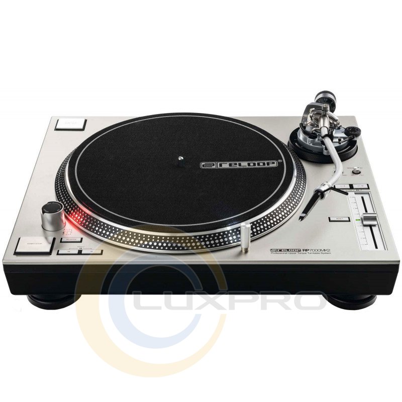 Reloop RP-7000 MK2 SILVER - проигрыватель виниловых пластинок для DJ, прямой привод, алюминиевый платтер, 3 скорости 33 1/3, 45 и 78, функция реверса, диапазоны высоты тона, выход 1x PHONO/LINE, заземление, аксессуары в комплекте.