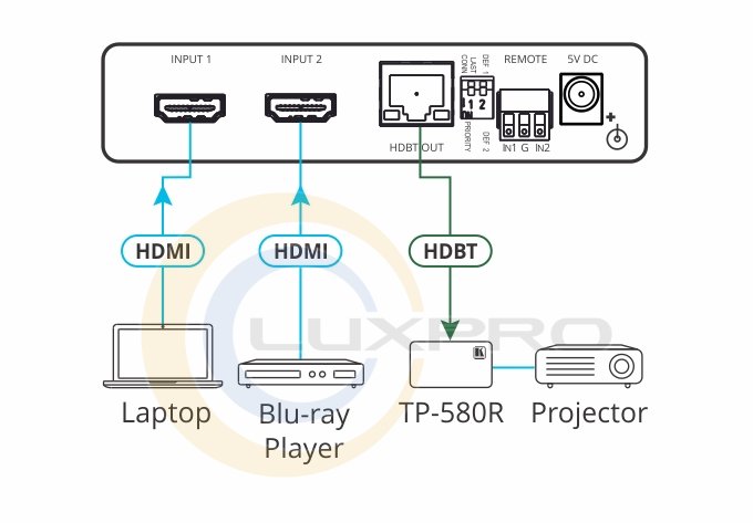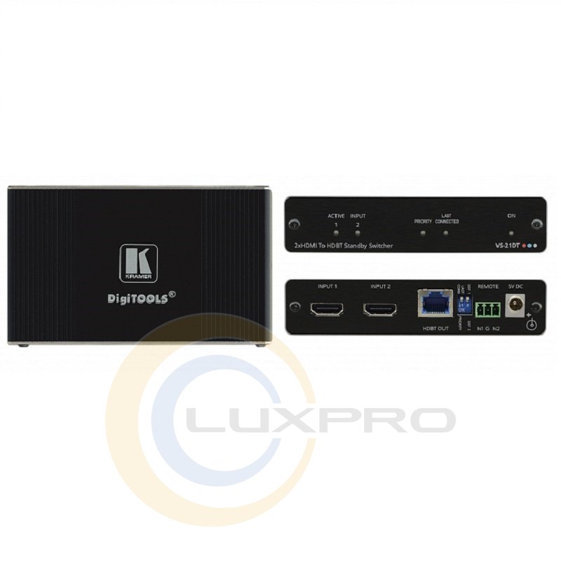 VS-21DT - коммутатор сигналов HDMI cо встроенным передатчиком по кабелю на витой паре по технологии HDBaseT. Прибор переключает входы в автоматическом (по приоритетному или последнему активному входу) и удаленном (замыканием «сухих» контактов) режимах. Выбранный входной сигнал конвертируется в формат HDBaseT для передачи на дальние расстояния.