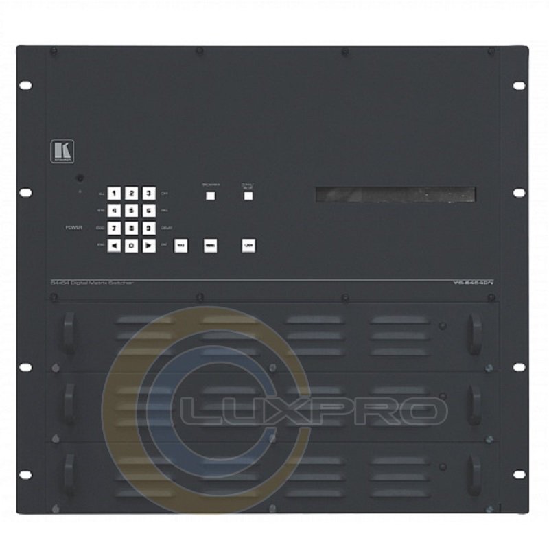 VS-6464DN — шасси высококачественного матричного коммутатора сигналов DVI-D и HDMI. Шасси заполняется модулями, в результате чего можно построить матричный коммутатор размерностью от 8x8 до 64x64 с шагом 8 входов/выходов. В состав шасси входит источник питания и модуль управления, а также модуль тестирования, с помощью которого можно контролировать состояние и проверять функционирование всех входов и выходов матрицы.