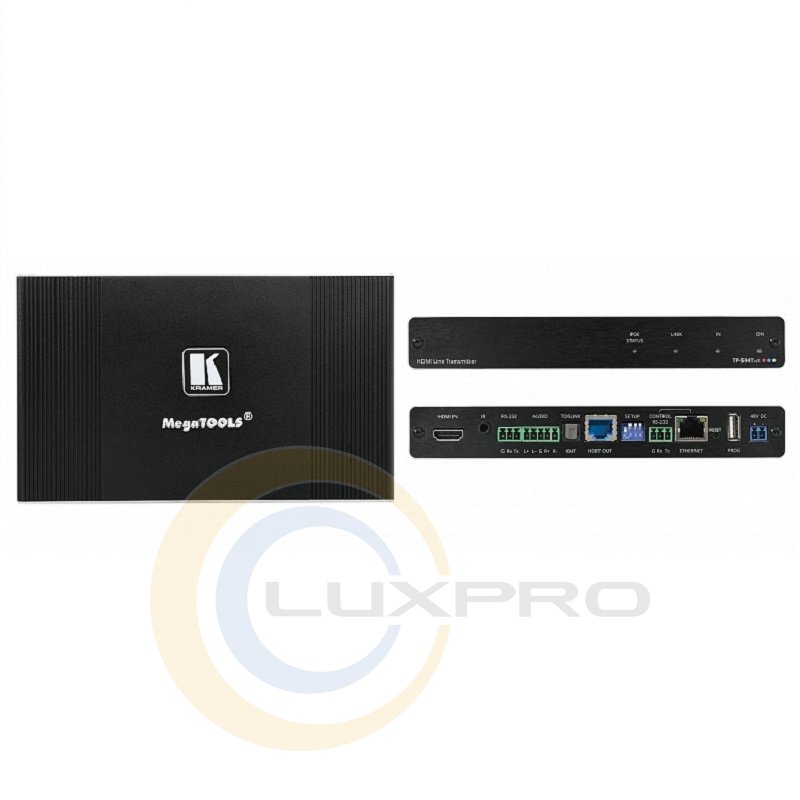 TP-594Txr – передатчик сигналов HDMI, RS-232, ИК, Ethernet и ARC по кабелю витой пары HDBaseT 2.0 c поддержкой разрешений до 4K@60 Гц (4:4:4) и технологии HDR. TP-594Txr производит преобразование всех входных сигналов в сигнал, передаваемый по линии HDBaseT 2.0, а также вывод ARC (обратного аудиоканала) от удаленного потребителя сигнала на вход HDMI и цифровой и аналоговый аудиопорты. Аналоговый порт также позволяет эмбедировать аудиосигнал в HDMI для дальнейшей передачи по линии HDBaseT.