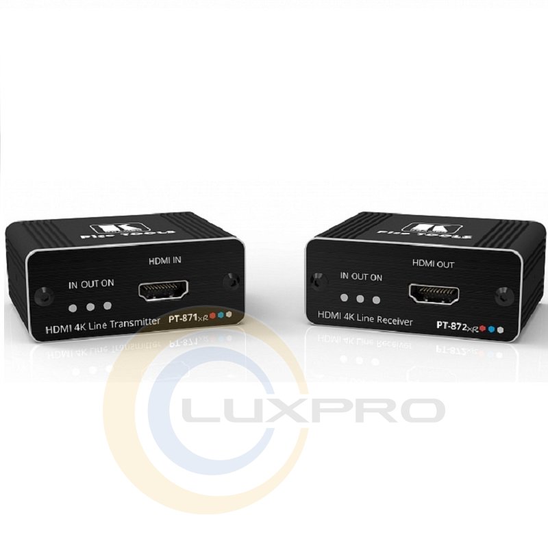PT-871/2xr-KIT — комплект передатчика и приемника сигнала HDMI по кабелю на витой паре DGKatTM 2.0 c разрешением до 4K@60 Гц (4:4:4). Приборы поддерживают стандарты HDMI 2.0 и HDCP 2.2. Двустороннее питание; источник питания можно подключать только к одному из устройств, второе получает питание по кабелю витой пары. PT-871 конвертирует входной сигнал HDMI в формат DGKatTM 2.0 для передачи на дальние расстояния, PT-872xr осуществляет обратное преобразование. Комплект обеспечивает передачу сигналов на расстояние до 60 м с разрешением до 4K@60 Гц (4:4:4) или до 70 м с разрешением 4К@60 Гц (4:2:0) 8 бит на канал (при использовании экранированных кабелей типа витая пара Kramer).