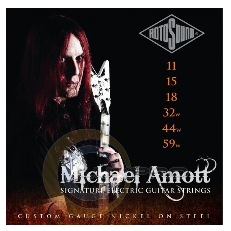 Rotosound MAS11 были созданы в соответствии с требованиями известного гитариста Майкла Эмотта (Arch Enemy/Carcass). Этот гибридный набор включает 6 струн для электрогитары из стали с никелевой обмоткой. Отличаются отличным тоном и интонацией.