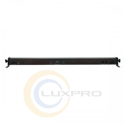 Возможно управление с контроллера по протоколу DMX512. Имеются входной и выходной (для организации каскада) сигнальные разъемы XLR 3-pin. Для ручной настройки предназначены LED дисплей и кнопки меню. Питание от стандартных электросетей. Встроенный импульсный адаптер. Есть входная и параллельная розетки IEC. Кабель 1,5 м прилагается. Корпус выполнен из алюминия. Крепежные приспособления в комплекте.