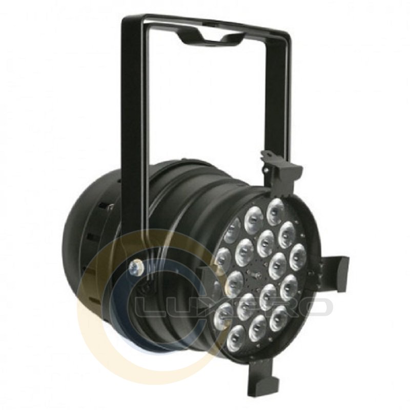 Светодиодный LED прожектор LED Par 64 Q4-18 Black линейки Parcan (PAR 64) заливающего света, предназначенный для эксплуатации в сухих, мало запылённых, помещениях. Без мерцания. В качестве источника света используются 18 RGBW мультичипов 4-в-1. Одним из основных режимов работы является режим под управлением по протоколу DMX512, для чего в устройстве предусмотрены пара разъёмов XLR 3-pin (вход и выход).