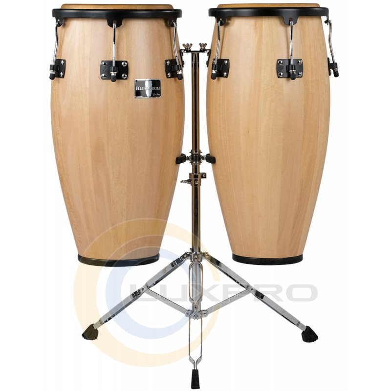 FS1112 SETN - конго 11"х28" +12"х28", корпус из манго (Mango), кожаные пластики, натуральный цвет, черная фурнитура, стойка в комплекте. Изготовленные с использованием технологий, применяемых в более дорогих моделях, конги Gon Bops серии Fiesta делают качественный звук и долговечность доступными каждому. Эргономичная фурнитура обеспечивает превосходный комфорт при игре, а корпус из древесины манго и мембраны из сыромятной кожи придают звучанию этих барабанов невероятную насыщенность и плотность. Конги Gon Bops Fiesta это по-настоящему профессиональная перкуссия, которая прекрасно подходит для выступлений - они не только отлично звучат, но и превосходно выглядят.