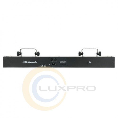 Предусмотрены разъёмы управления 2 х XLR 3-pin (вход и выход). Для звуковой активации предназначен интегрированный в корпус микрофон с регулируемой чувствительностью. Имеется эффект переменной частоты вспышек. Питание осуществляется от стандартной электросети, разъём питания IEC, кабель питания 1 м прилагается. Для монтажа устройства предусмотрены 2 поворотные лиры.