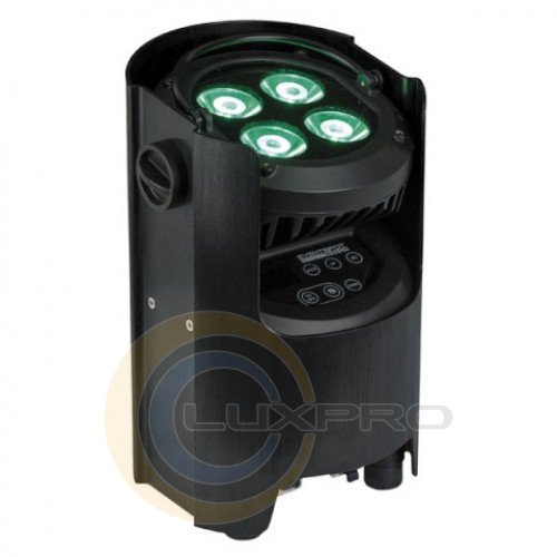 Светодиодный LED прожектор EventSpot 1600 Q4 4x 12W RGBW, Black с узким углом раскрытия луча, работающий от аккумуляторной батареи. В качестве источника света используются 4 RGBW мультичипа. Без мерцания. Для внешнего управления может быть задействован протокол DMX512 через сигнальный разъём XLR 3-pin (аналогичный выходной разъём для иных устройств присутствует) или через дополнительно приобретаемый беспроводной W-DMX модуль.