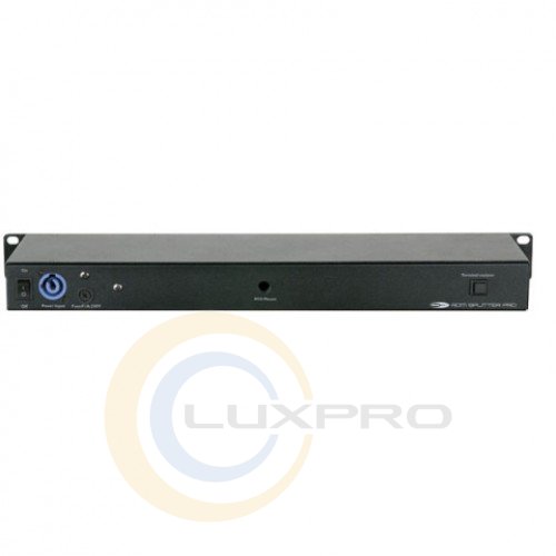 RDM Splitter Pro 4 Channel DMX Booster with RDM 3 & 5p XLR - распределитель, 4-х канальный разветвитель DMX/RDM-сигнала в рэковом исполнении. В устройстве предусмотрены 2 х XLR 3-pin и 2 x XLR 5-pin разъёмы (входы и сквозные), 4 х XLR 3-pin и 4 x XLR 5-pin выходных разъёмов. При этом гарантируется приемлемый для качественного управления уровень сигнала. Каналы, а также входная и выходная секции, оптически изолированы. Присутствуют светодиодные индикаторы наличия сигнала для каждого входа/выхода и наличия питания.