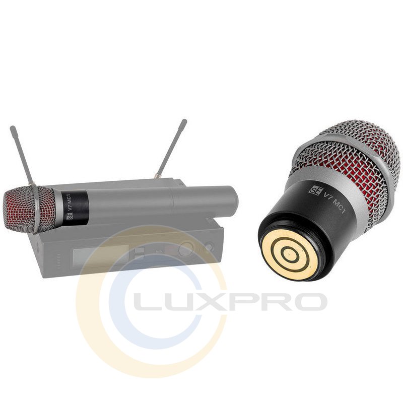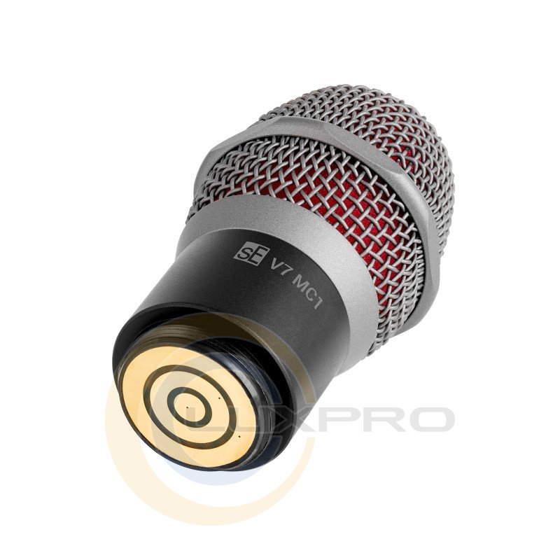SE ELECTRONICS V7 MC1 (Shure) - микрофонный капсюль совместимый со всеми передатчиками Shure® (кроме серий BLX и GLX-D). Алюминиевая катушка, неодимовый магнит, диапазон частот: 40 Гц - 19 кГц, электрический импеданс: 300 Ом, чувствительность: 2.0 мВ / Па (-54 дБ), диаметр: 54 мм, длина: 92 мм, вес: 150 г.