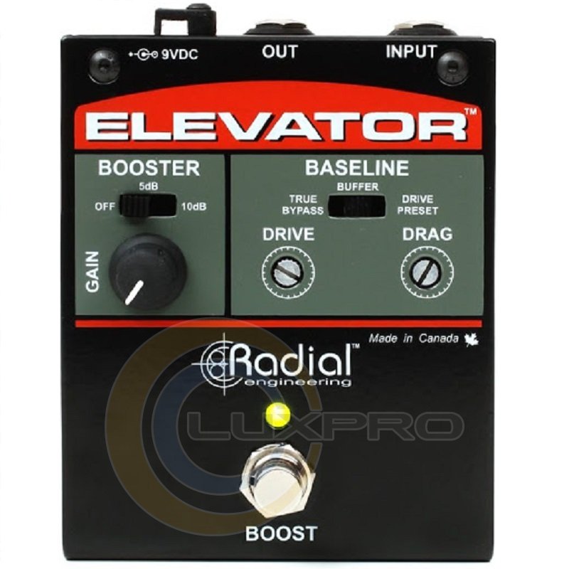 ELEVATOR – педаль эффектов, буста с высоким уровнем настройки, которая соответствует вашему стилю игры с любой гитарой, усилителем или цепью педалей. Radial Elevator имеет множество полезных элементов управления, которые дают возможность настроить тон перед комбоусилителем. Коррекция Drag на входе помогает сохранить естественный тон инструмента перед выходом к гитарному усилителю.