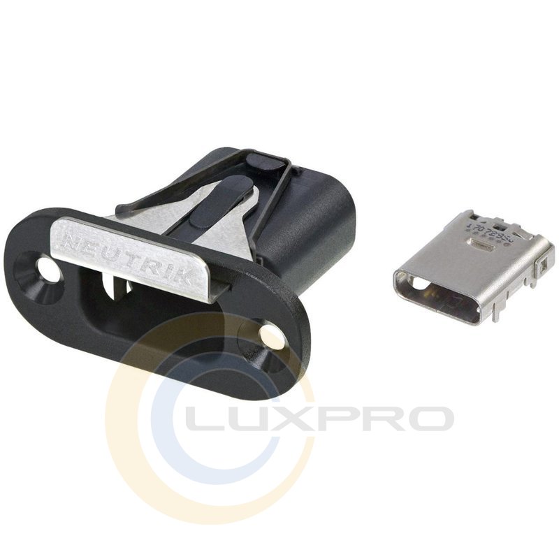 NMC-C-HR - разъем, запираемое шасси USB Type-C со встроенной розеткой, одобренной для использования с интерфейсом USB, версия USB 3.1 Gen.II, запирающий механизм Latch lock.