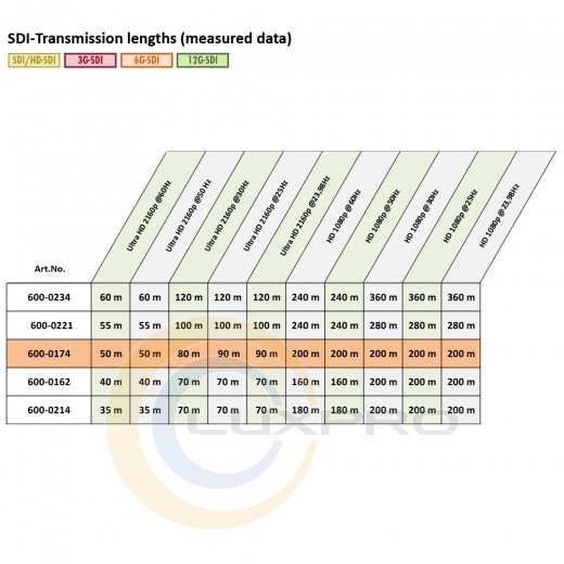 - сопротивление кабеля: 0.11Ω/m (0.034Ω/Ft);