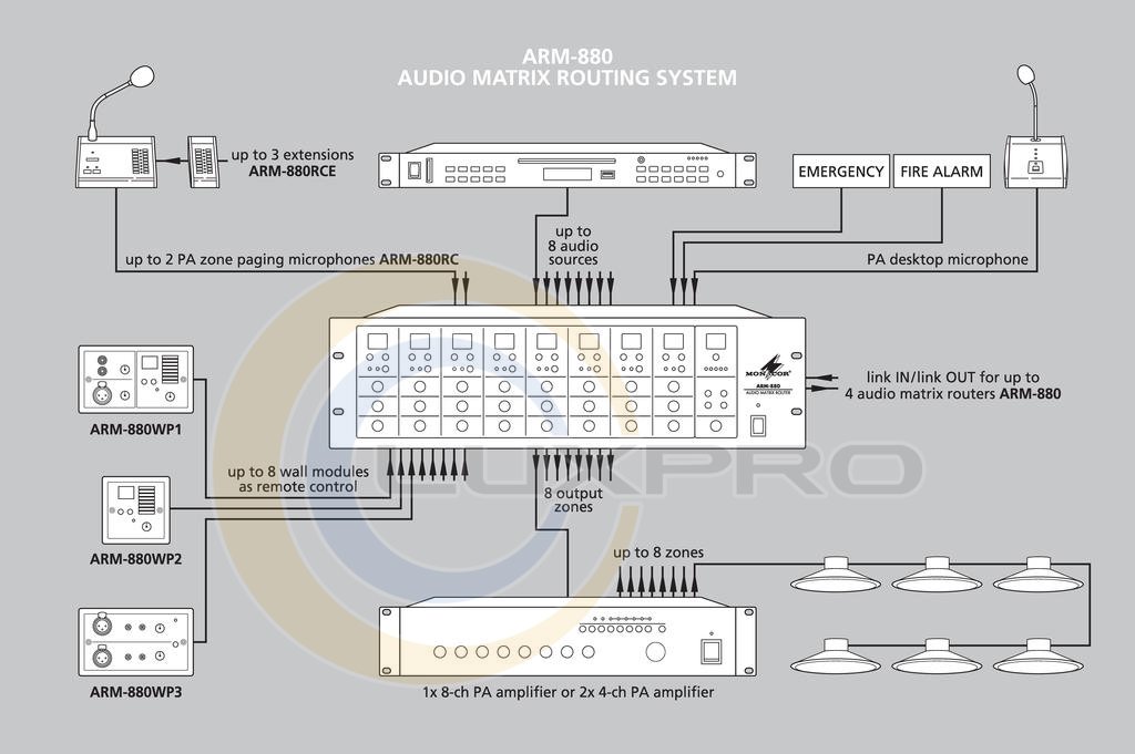ARM-880WP1 - контроллер, это очень гибкое PA-решение для многокомнатных приложений. Он идеально подходит для применения в отелях, ресторанах и барах, конференц-залах, школах, спортивных сооружениях и фитнес-центрах. Восемь различных аудиоисточников, например, CD-проигрыватели, SAT-приемники, радиопрограммы, могут быть распределены на 8 выходных зон, назначение по мере необходимости.