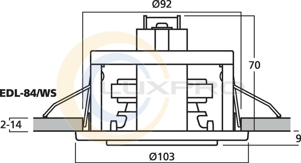 - монтажный вырез: Ø 92 мм;