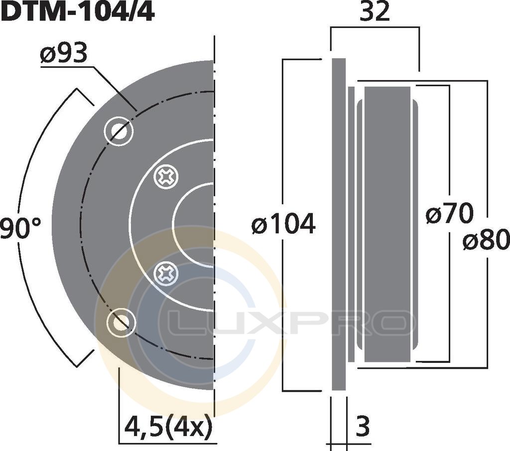 Monacor DTM-104/4 - высокочастотный купольный твитер, 45 Вт, 8 Ом (/ 8) и 4 Ом (/ 4).