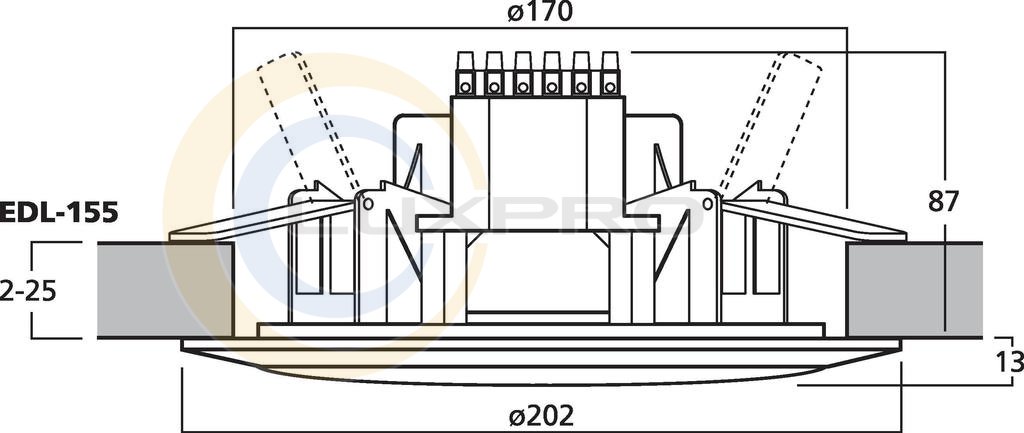 Monacor EDL-156 - потолочный динамик PA термостойкий до 100 ° С. Для применения в саунах и бассейнах.