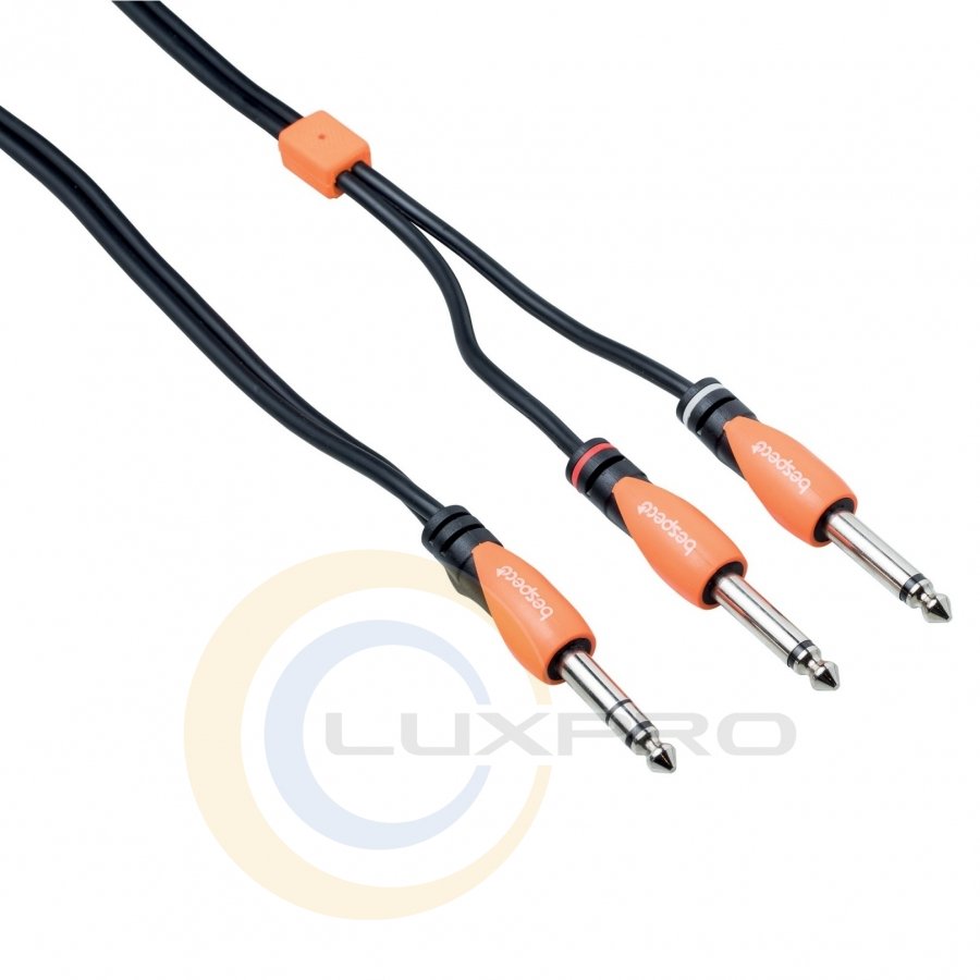 Готовый соединительный кабель BESPECO SLYSRM180 серии SiLOS. Длинна кабеля: 1,8 м Разъёмы: 1х джек "стерео" - 2х RCA "тюльпана" цвет кабеля черный/оранжевый