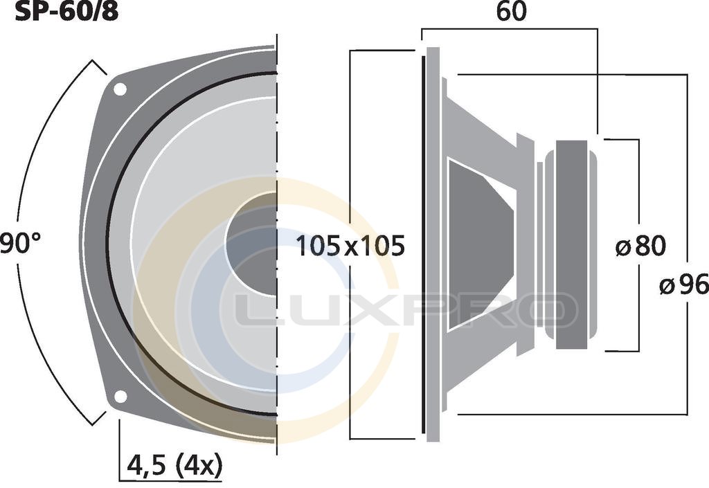 Высокочастотный динамик Monacor SP-60/4 30 Вт, 8 Ом (/ 8) и 4 Ом (/ 4).