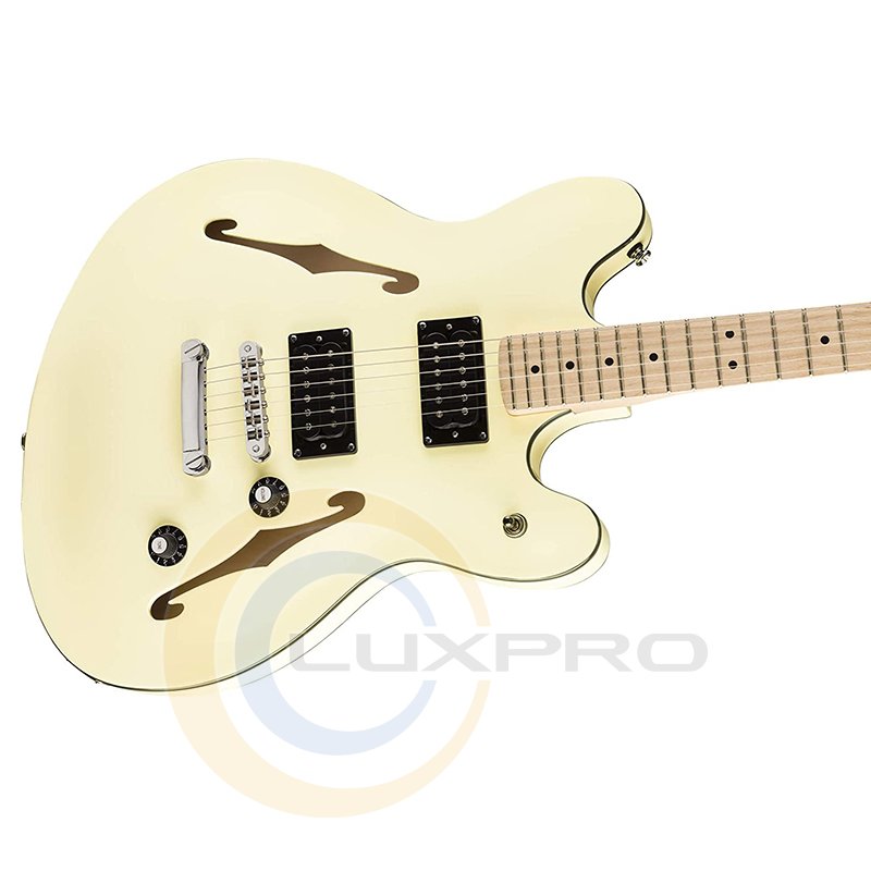 Когда Starcaster впервые выпустили в 70-х, он разрушил привычное представление о дизайне полуакустических гитар с помощью офсетной деки, предложив универсальное звучание и поразительный стиль для наиболее авантюрных гитаристов. SQUIER by FENDER Affinity Series Starcaster Maple Fingerboard Olympic White создает объемное звучание, благодаря двум звукоснимателям Squier humbucking, а из-за тонкого и удобного С-образного грифа, на инструменте очень легко играть.