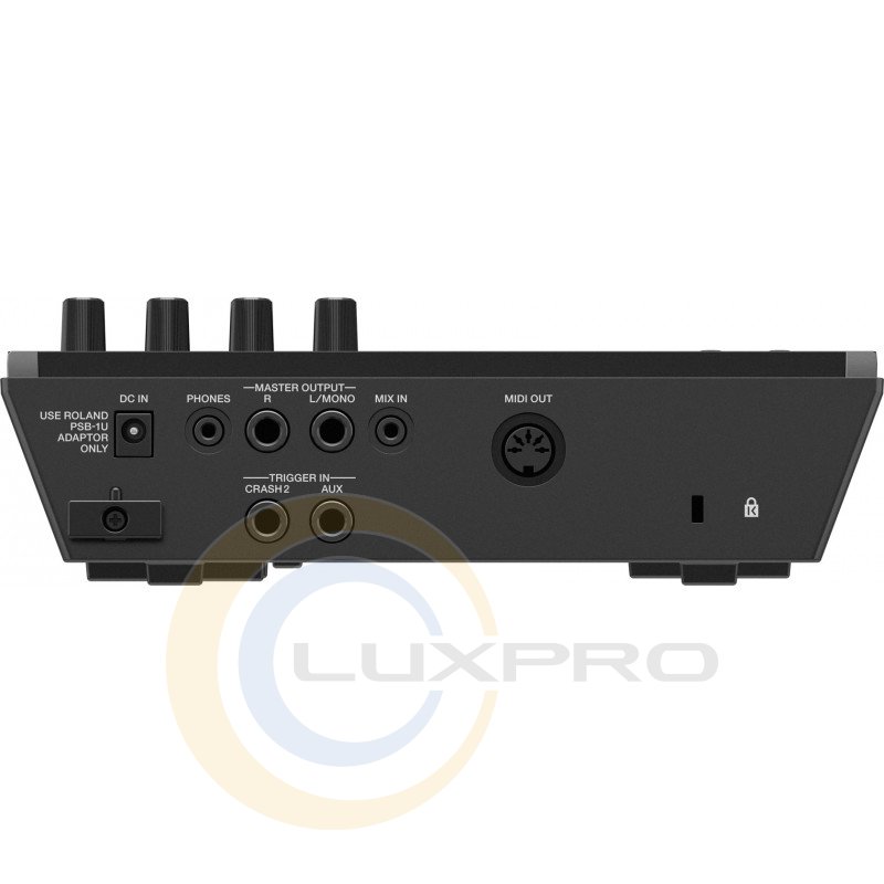 - разъемы: вход триггера DB-25, 2 входа триггера 1/4 дюйма, 2 мастер-выхода 1/4 дюйма, джек Phones, вход MIX, выход MIDI и порт USB;