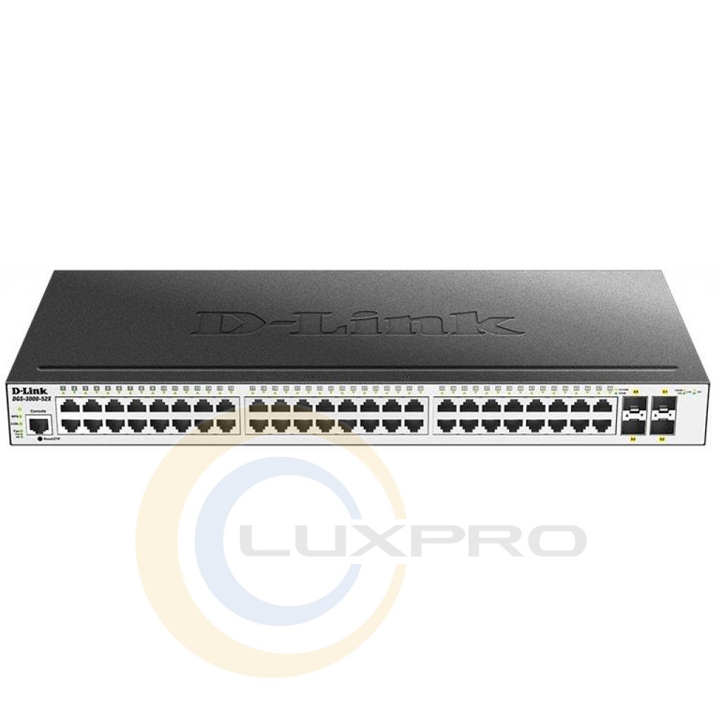 Коммутатор DGS-3000-52X 48xGE, 4xSFP+, 1xCons RJ45, L2