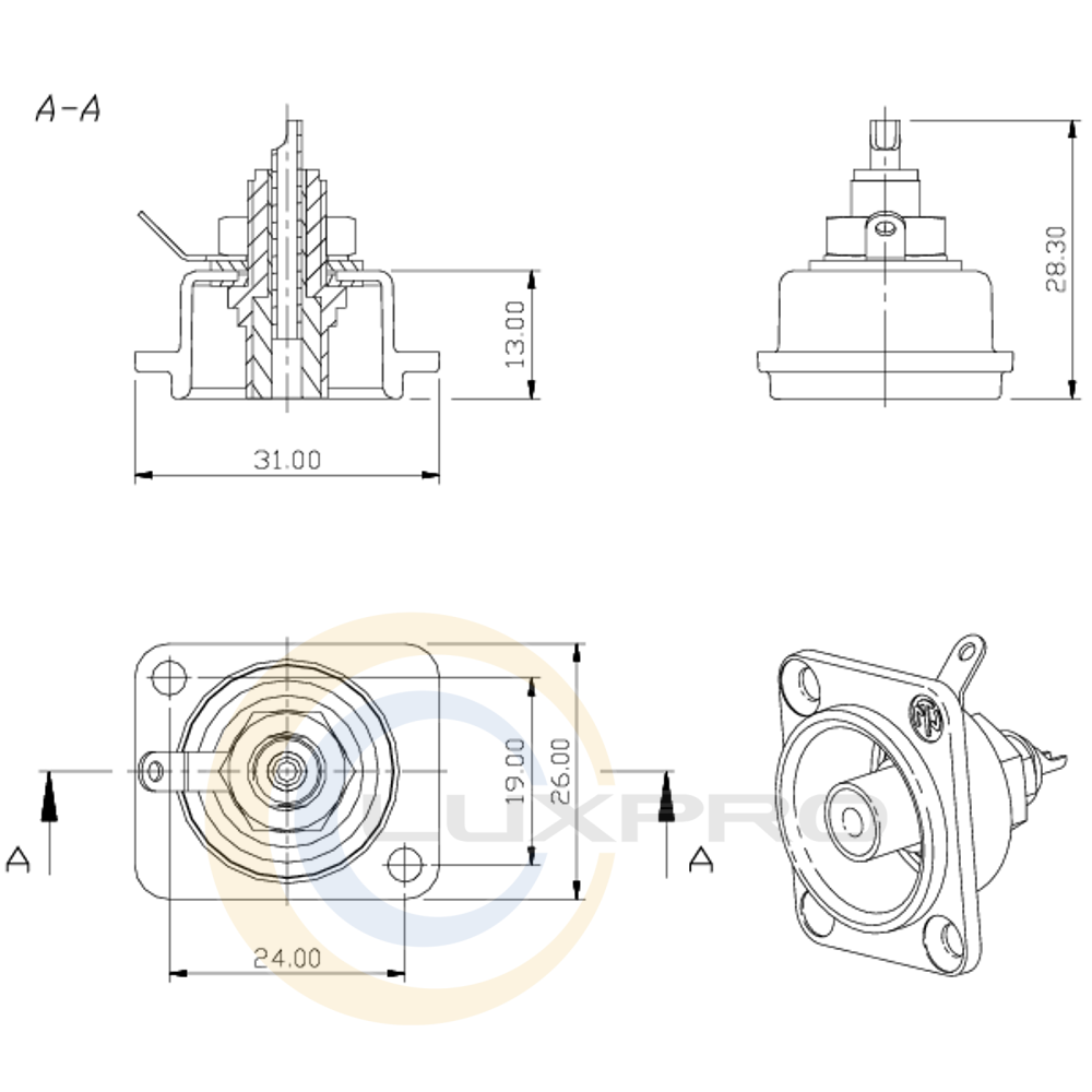 Профессиональное панельное гнездо RCA типа «тюльпан» под монтаж на шасси.