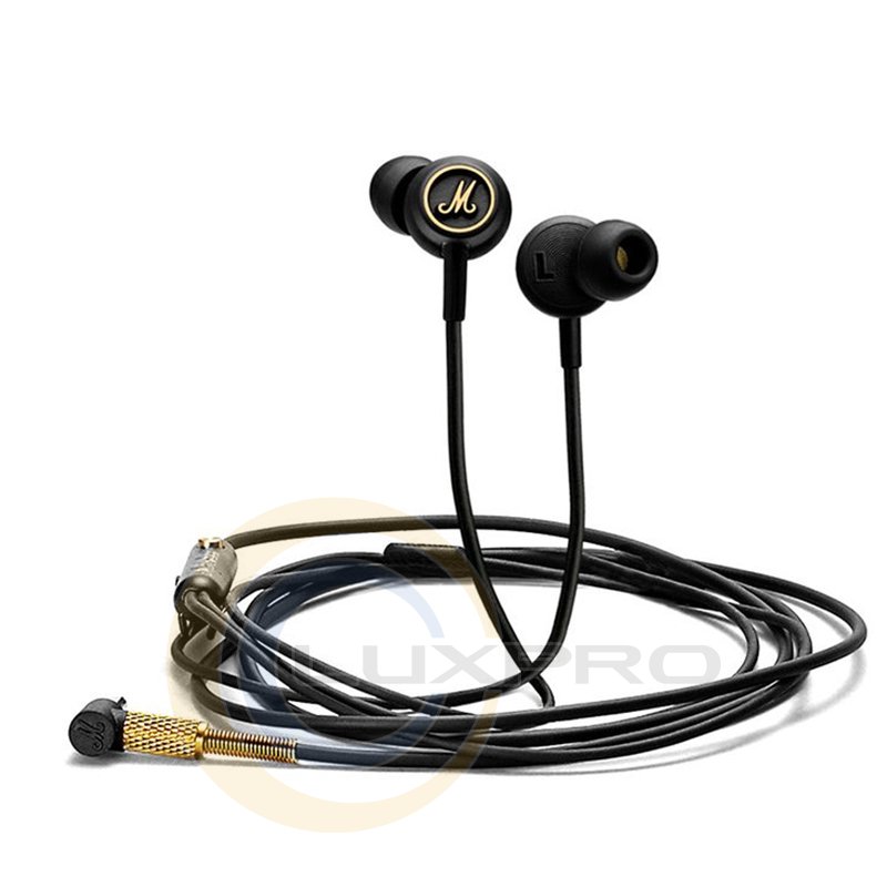 MARSHALL MODE EQ HEADPHONES BLACK/GOLD – это новая модель внутриканальных наушников от знаменитого британского производителя звукового оборудования Marshall. Наушники оборудованы микрофоном и мини-пультом, при помощи которого можно не только возобновлять и прекращать проигрывание, перематывать композиции в плеере, но и отвечать на звонки.