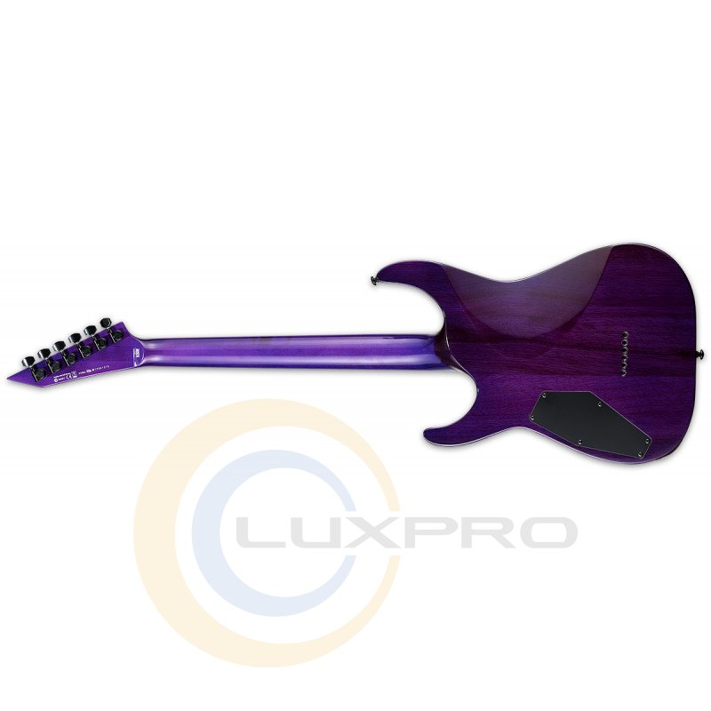 MH1000NT QM STP - электрогитара, включает в себя компоненты высшего класса, такие как замковые колки LTD, замковый бридж Tonepros TOM со струнами сквозь корпус и звукосниматели Seymour Duncan, которые монтируются непосредственно на корпус. Его глубоко вклеенный кленовый гриф из трех частей и накладкой из черного дерева оснащен 24 XJ ладами, а корпус из красного дерева имеет фигурный топ из стеганого клена с отделкой See Thru Purple.