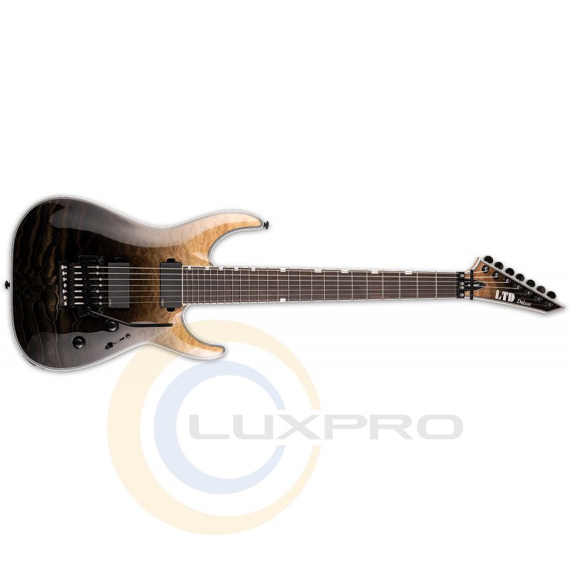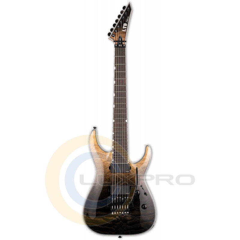 MH1007 QM BLKFD - электрогитара, с Floyd Rose, MH-1007, вероятно, именно то, что нужно! Оснащенный Floyd Rose SE с винтами из нержавеющей стали, инструмент построен с конструкцией типа set thru: корпусе из красного дерева и стеганым кленовым топом и кленовым грифом из трех частей с накладкой из черного дерева. MH-1007 создает мощное и агрессивное звучания благодаря активным датчикам EMG 85-7H и 81-7H. Доступен в отделке Black Fade.