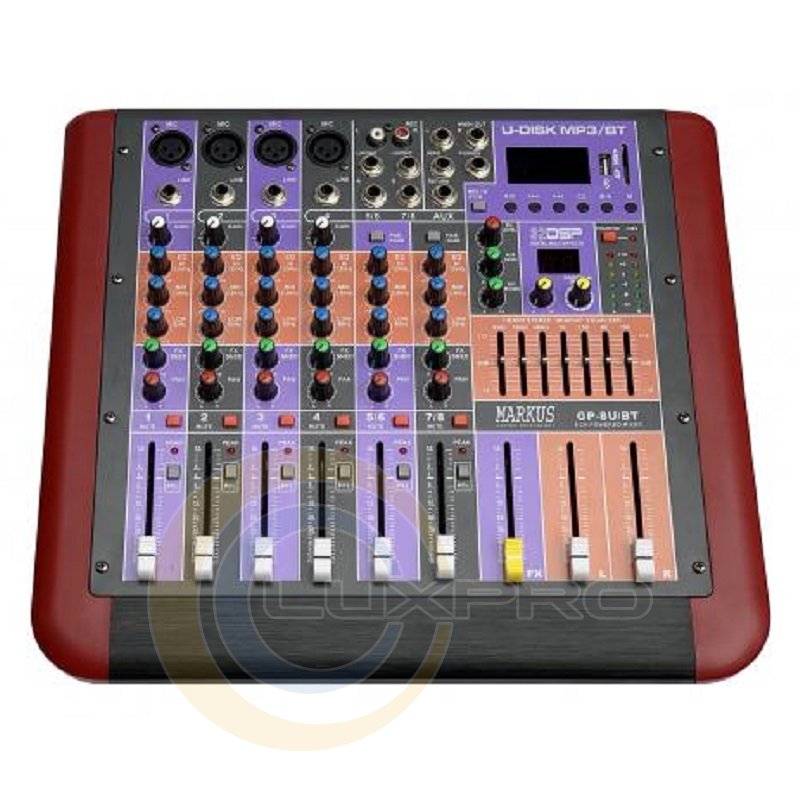 Markus GP 8 U-BT - активный микшерный пульт несмотря на маленькие размеры укомплектован всеми необходимыми функциями и коннекторами для озвучивания музыкальных мероприятий.