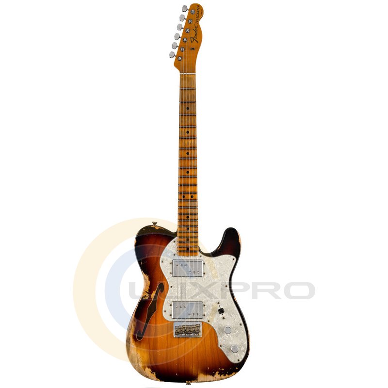 1972 год стал свидетелем появления новой модели Telecaster Thinline, которая вывела популярную электрогитару Fender на новую, смелую территорию, как по звучанию, так и по стилю. Наиболее примечательно то, что два новых больших хамбакера с высоким выходом, разработанные знаменитым создателем звукоснимателей Сетом Ловером, были помещены в новый роскошный пикгард, под которым установлен новый фиксированный 6-седельный бридж.