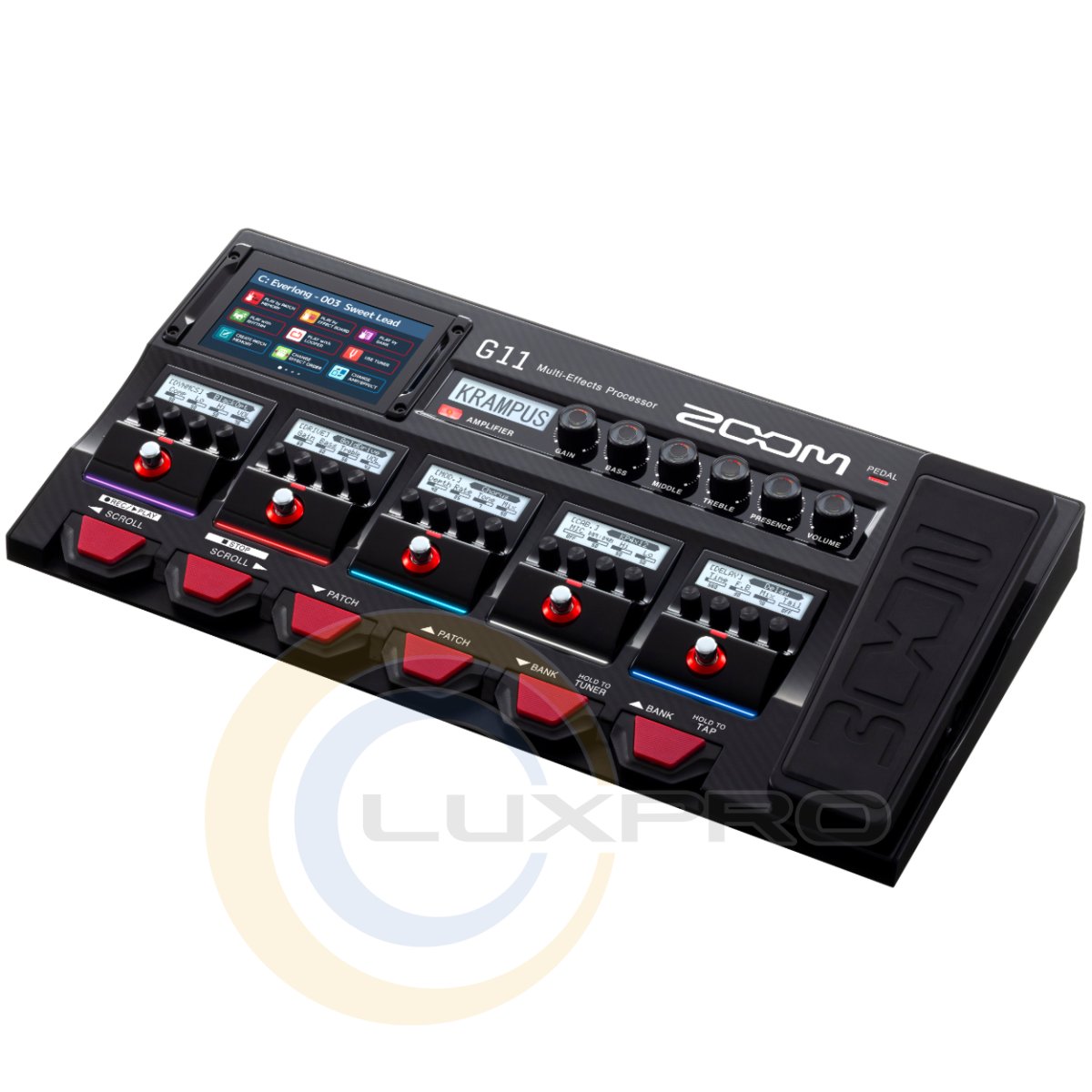 Модель заполнена классическими эффектами компании - динамическими, модуляционными, дилэями, реверберациями и многим другим. В дополнение к этому идут электрифицирующие эффекты дисторшэна и модуляции, которые расширяют привычное звучание. Zoom G11 заполнен 22 кабинетными эмуляциями, а также 70 предварительно загруженными импульсными характеристиками, которые были зафиксированы при размещении микрофона в трех разных положениях. Это гарантирует, что у вас есть широкий арсенал на выбор.