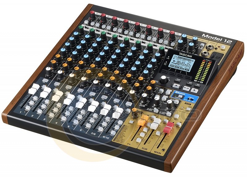 Восемь моно каналов оснащены трёхполосным эквалайзером с полупараметрическим управлением средними частотами. На каждом моноканале музыканты и звукорежиссёры также найдут простой компрессор, управляемый одним регулятором. Для любителей эффектов и продвинутого мониторинга предусмотрены два посыла: один в режиме постфейдера, второй — только для эффектов. TASCAM Model 12 обладает собственной секцией эффектов из 16 обработок, применять которые можно как к каждому каналу в отдельности, так и к группам, шинам и посылам.