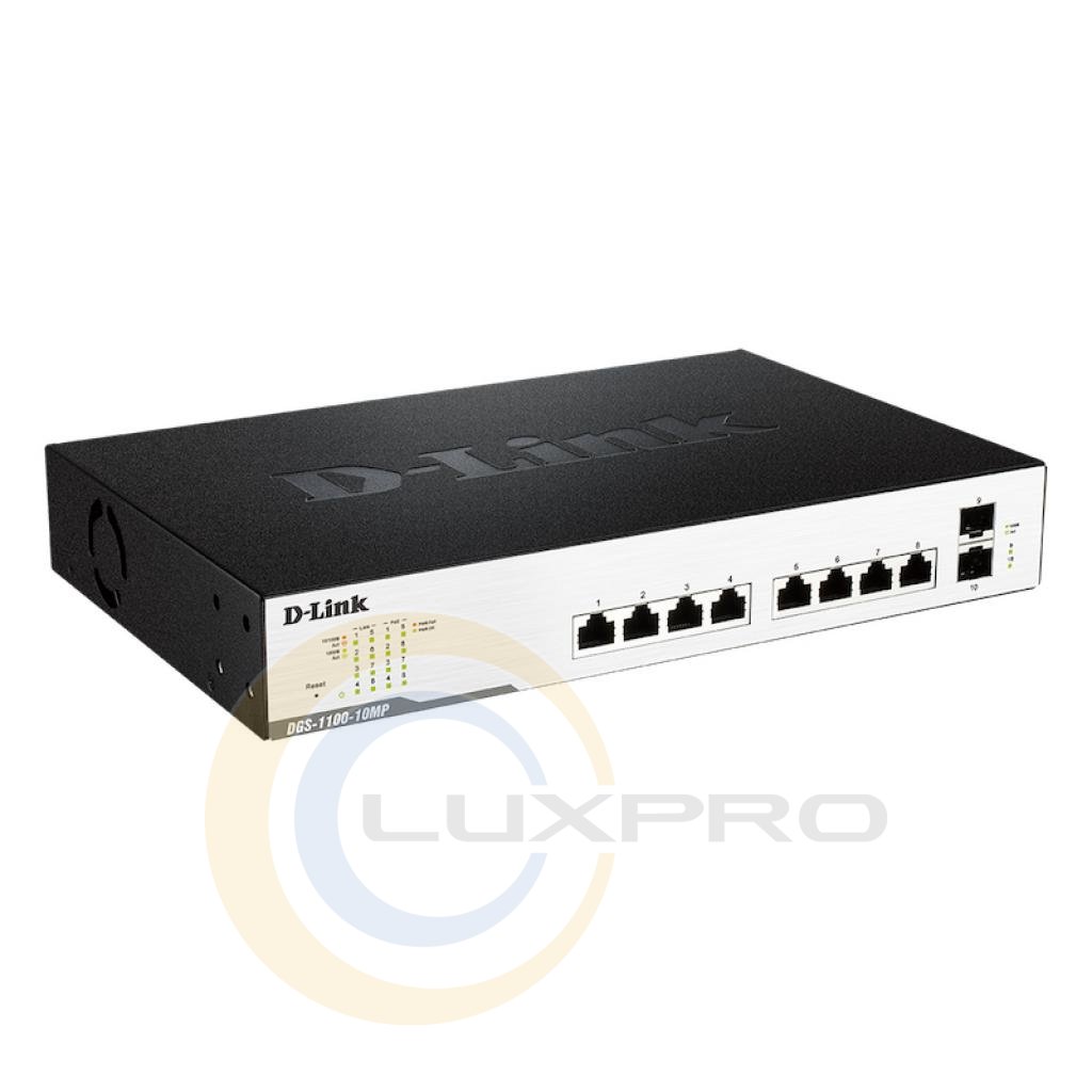 Коммутатор DGS-1100-10MP 8x1GE w/PoE 2xSFP/1G, PoE 130Вт, EasySmart