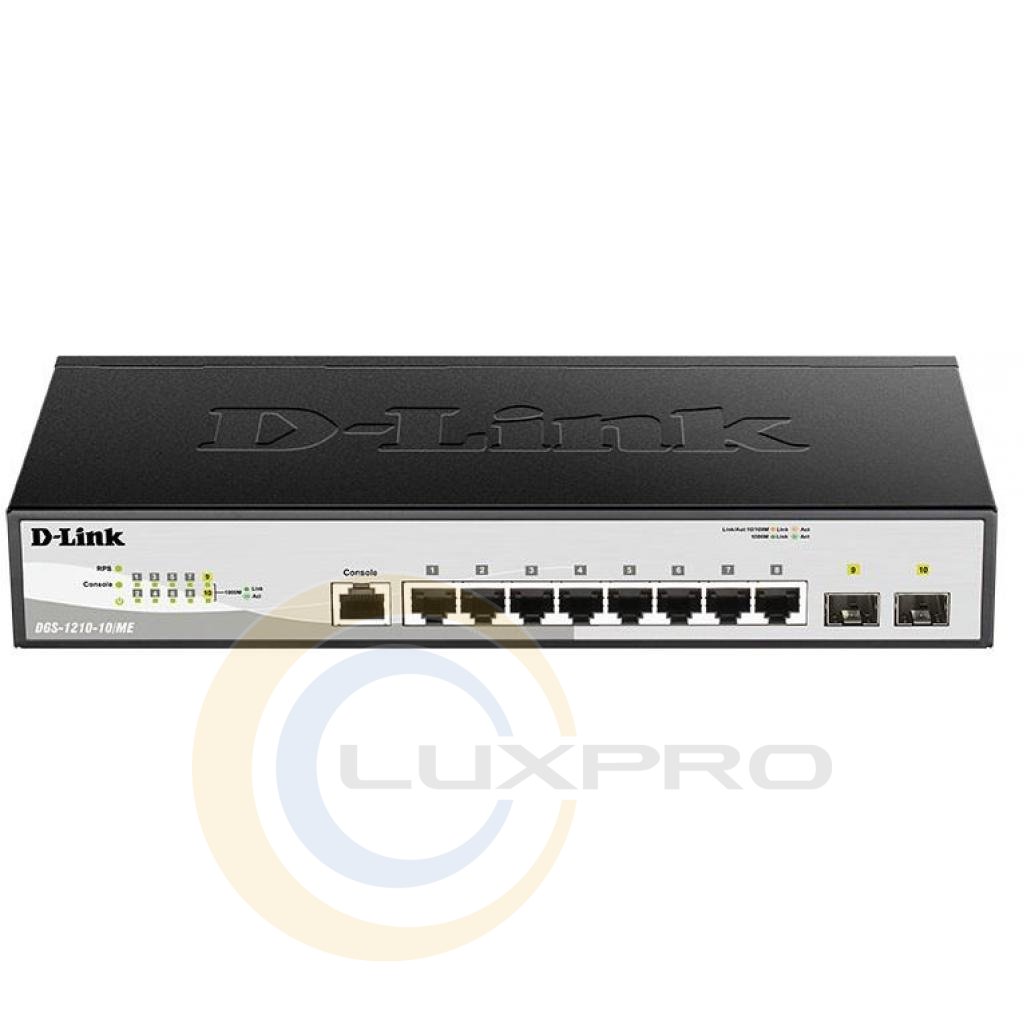 Коммутатор DGS-1210-10/ME 8x1GE, 2xSFP, Smart